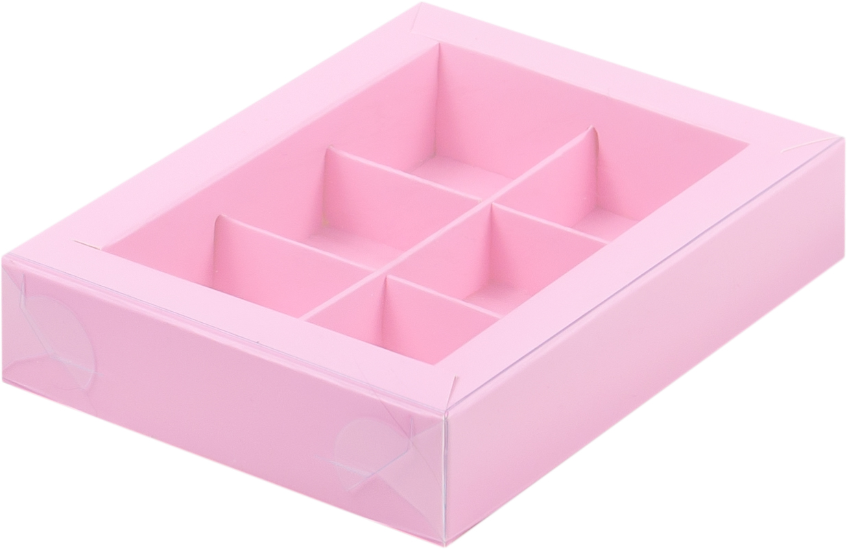 Коробка для конфет розовая матовая с пластик крышкой 15,5 *11,5 *3 см (6)