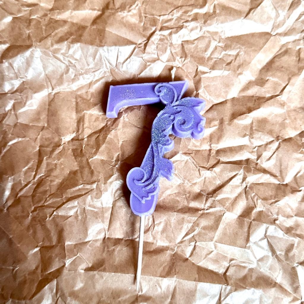Свеча для торта восковая "Цифра 7", сирень
