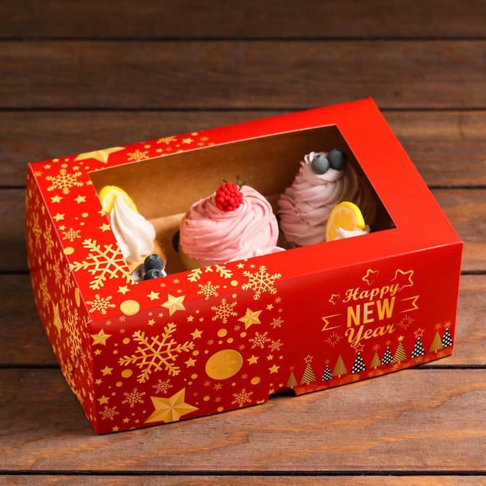 Упаковка на 6 капкейков с окном "Счастливый Новый год", 25 х 17 х 10 см