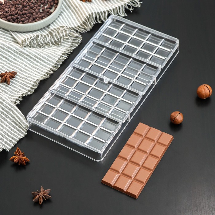Форма для шоколада и конфет«Плитка», 33×16,5×3 см, 60 ячеек, цвет прозрачный