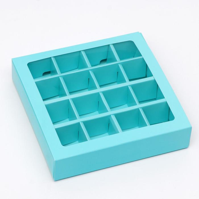 Коробка для конфет, 16 шт, голубая, 17,7 х 17,7 х 3,8 см