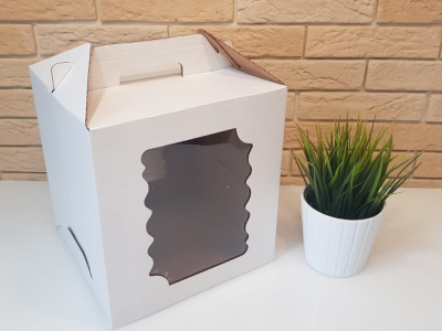 "Коробка с резным окном для торта 24 см*24 см*24 см с ручкой"
