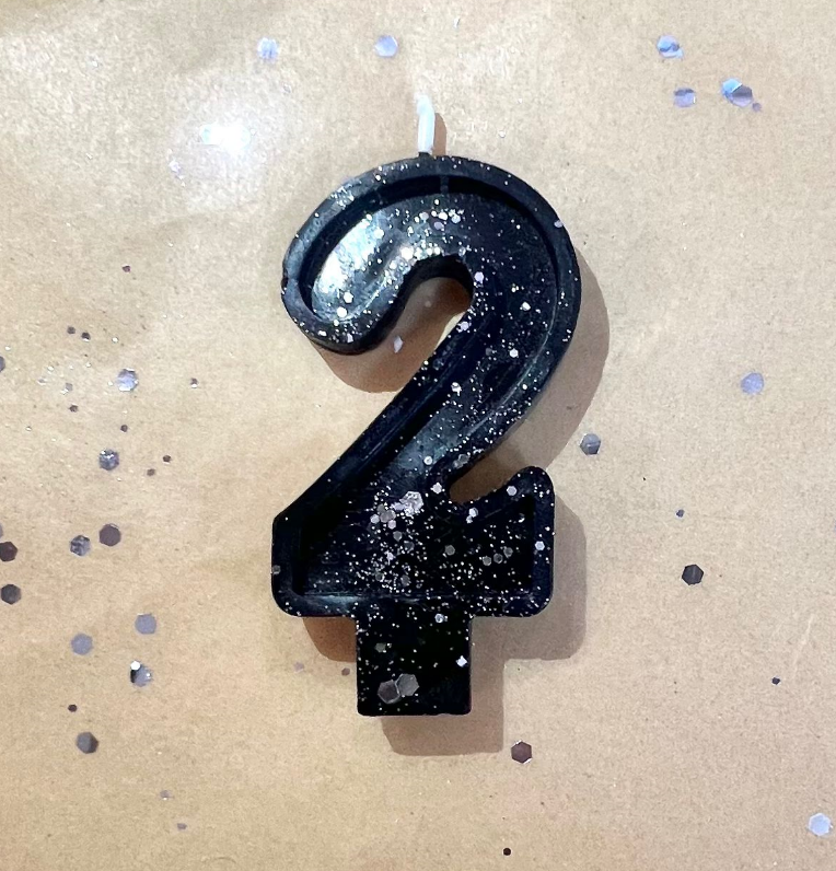 Свеча для торта восковая "Гламур", "Цифра 2" черная с серебром