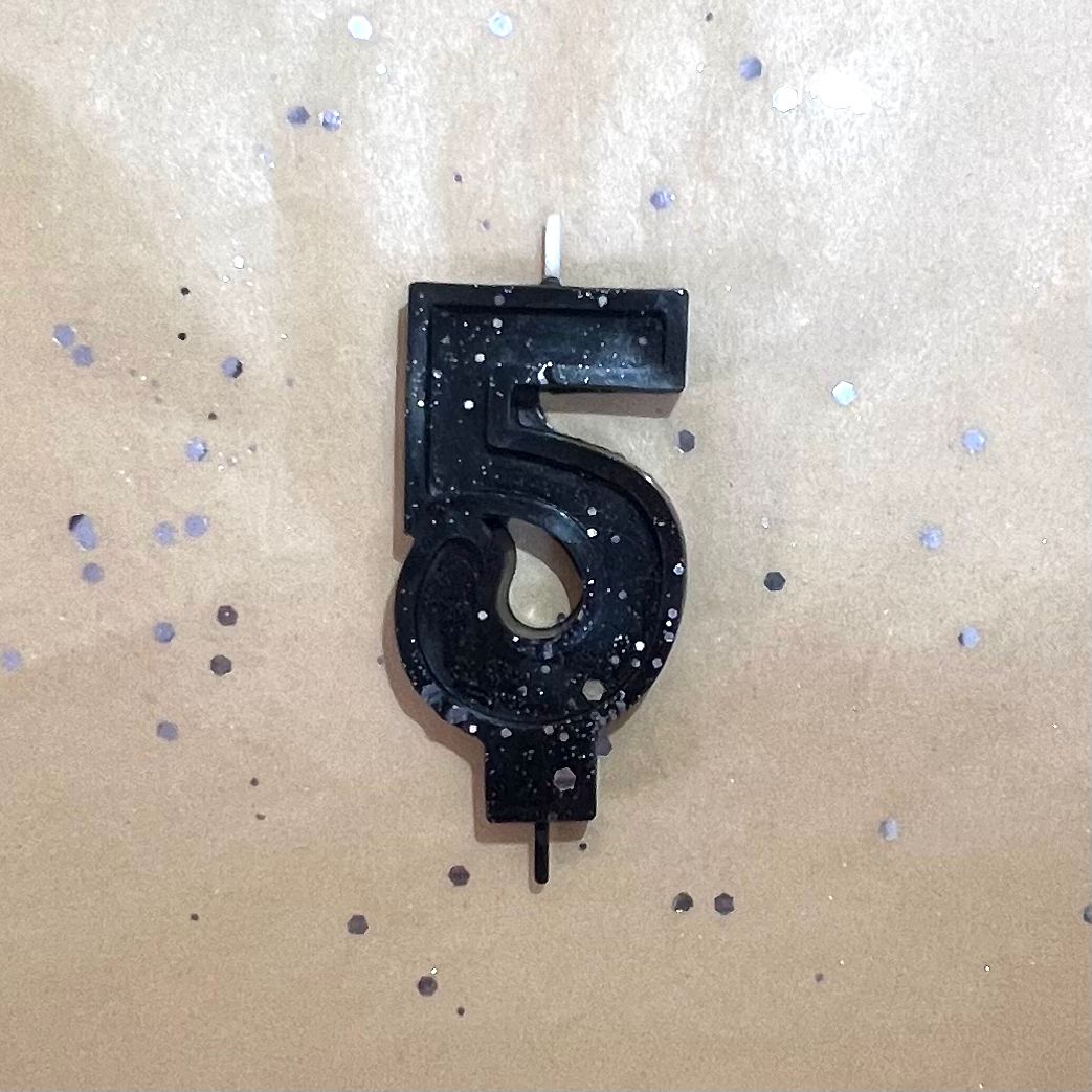 Свеча для торта восковая "Гламур", "Цифра 5" черная с серебром