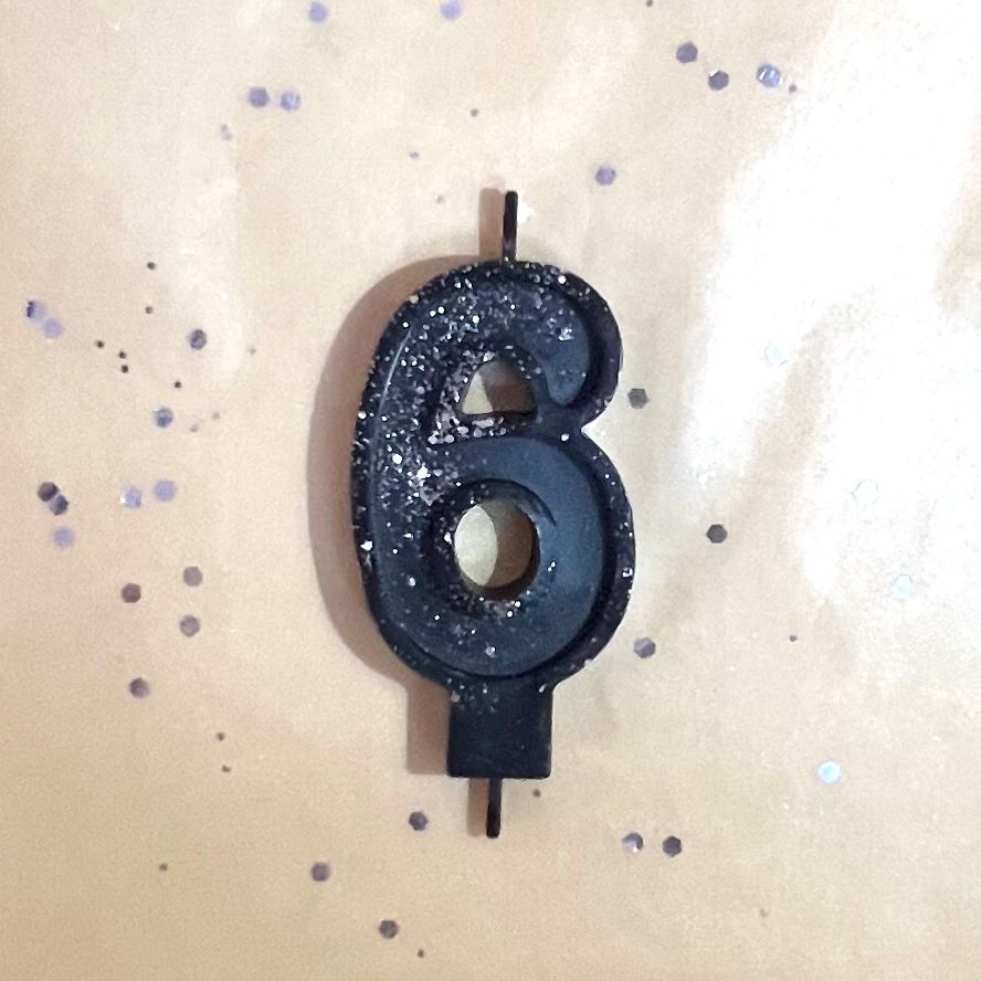 Свеча для торта восковая "Гламур", "Цифра 6" черная с серебром