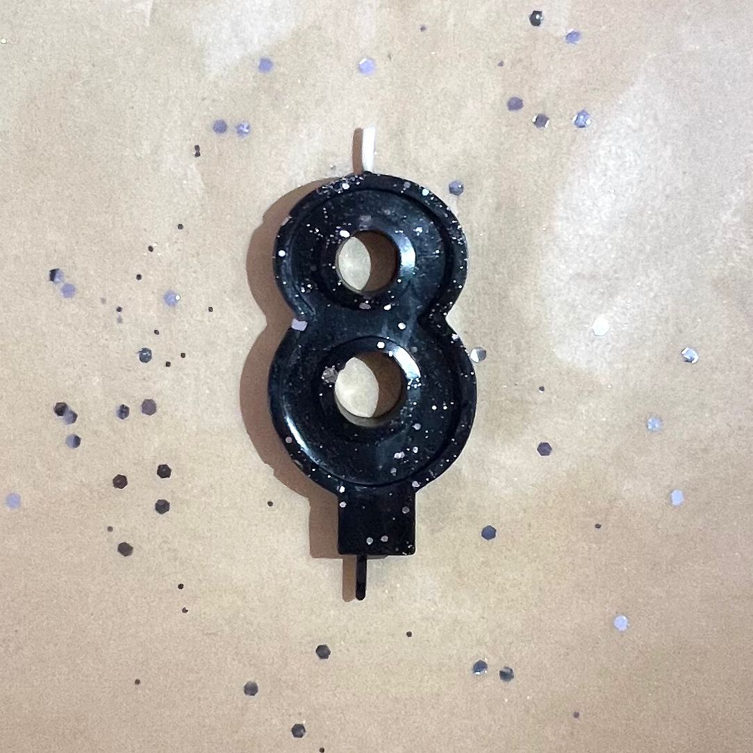 Свеча для торта восковая "Гламур", "Цифра 8" черная с серебром