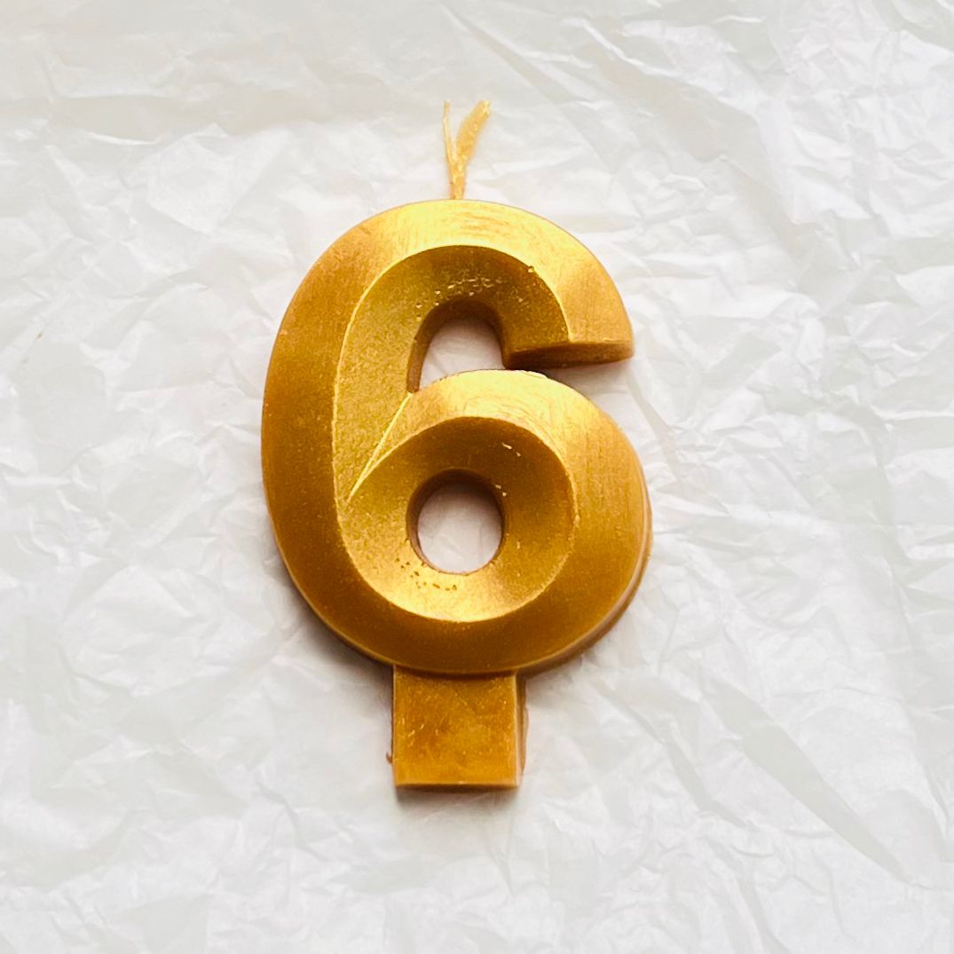 Свеча для торта восковая "Грани", "Цифра 6", золото