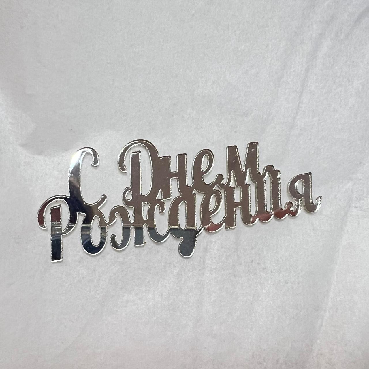 Топпер акрил "С Днем Рождения" 8 см, серебро