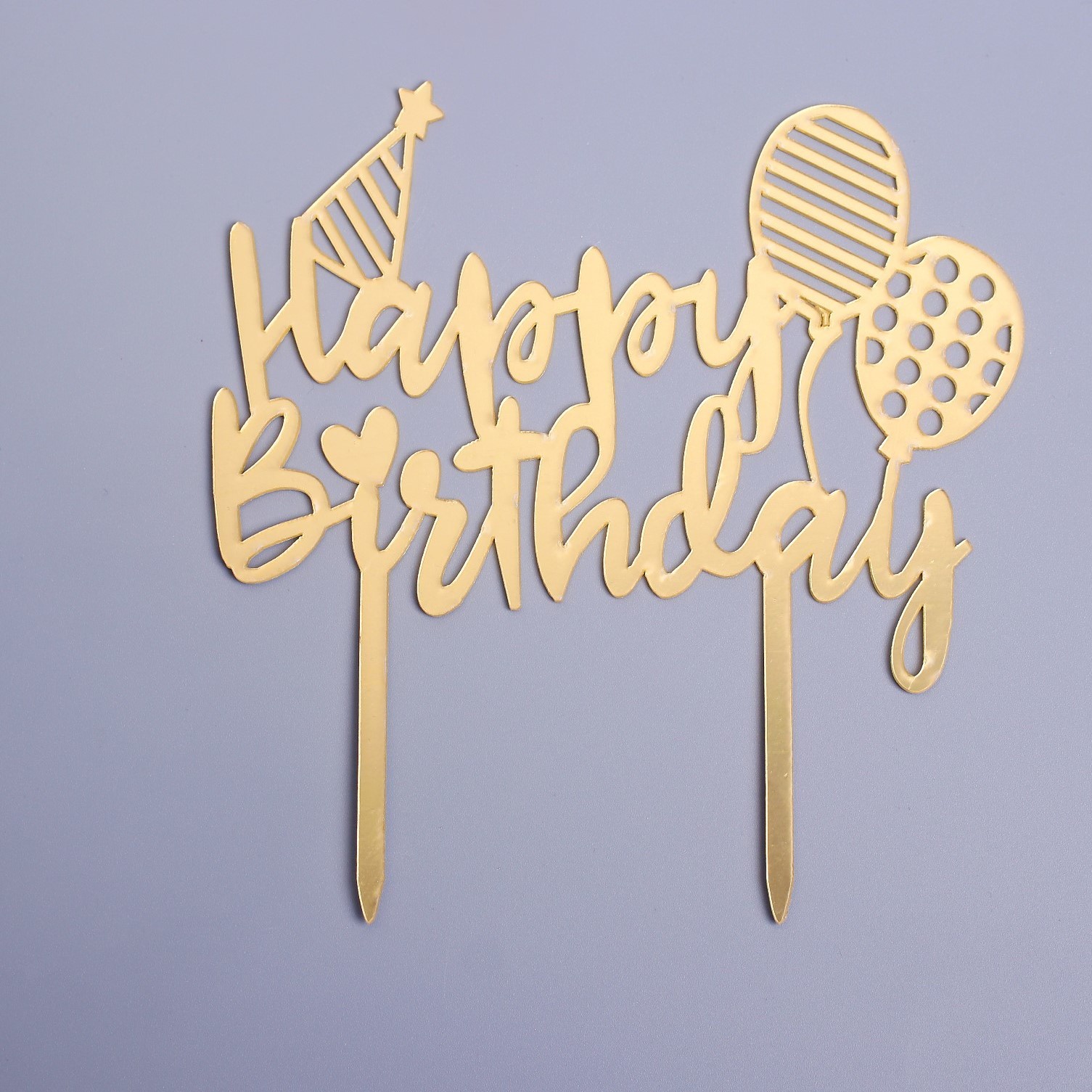 Топпер «С Днём Рождения», воздушные шары, цвет золотой